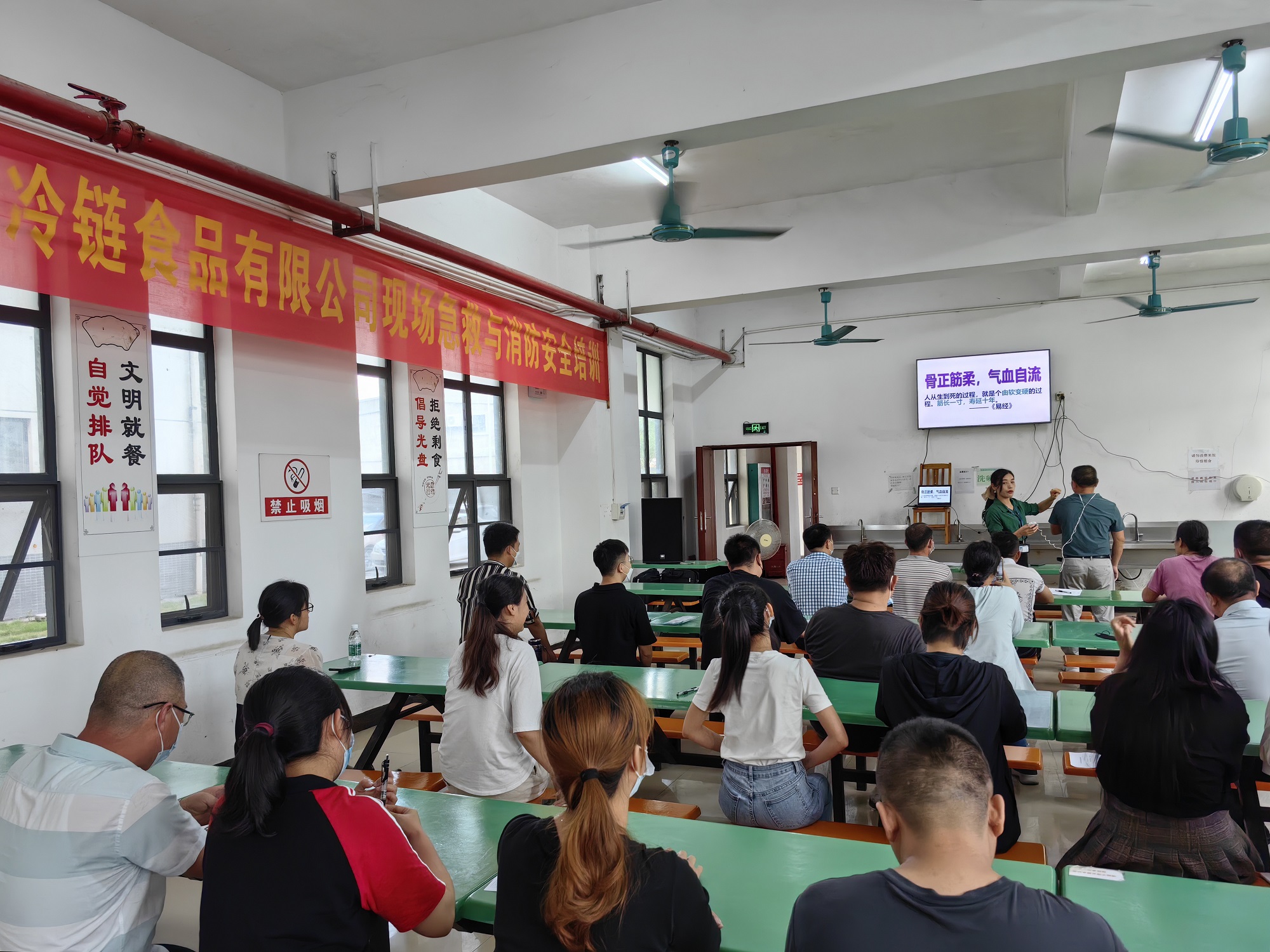 為推動(dòng)學(xué)習(xí)貫徹習(xí)近平新時(shí)代中國(guó)特色社會(huì)主義思想,進(jìn)一步貫徹落實(shí)黨的二十大精神和習(xí)近平總書(shū)記關(guān)于安全生產(chǎn)重要論述,以安全生產(chǎn)促進(jìn)公司高速發(fā)展。5月25日,北海冷鏈公司在員工食堂開(kāi)展了現(xiàn)場(chǎng)急救與消防安全培訓(xùn),公司領(lǐng)導(dǎo)干部職工以及租戶(hù)企業(yè)從業(yè)人員共60余人參加了本次培訓(xùn)。